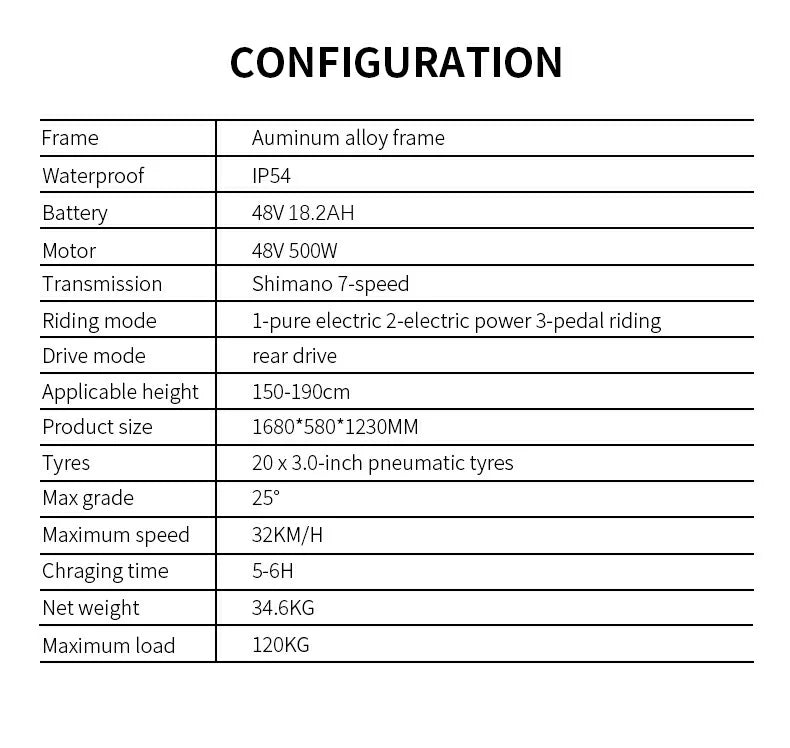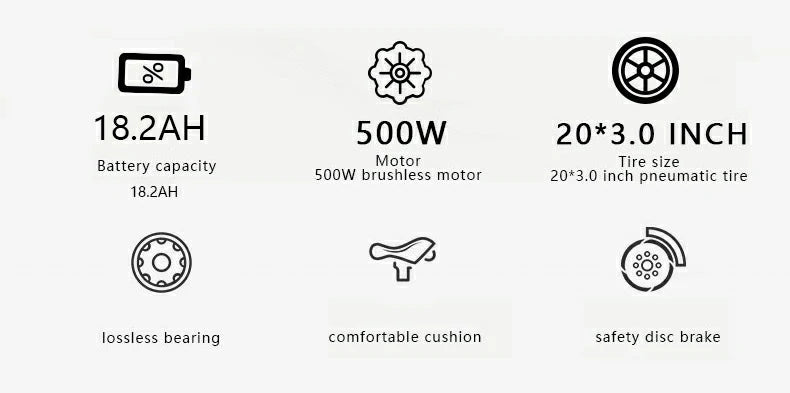 500W Motor | 48V 18.2 Battery | 32km/h Speed | 70km Range