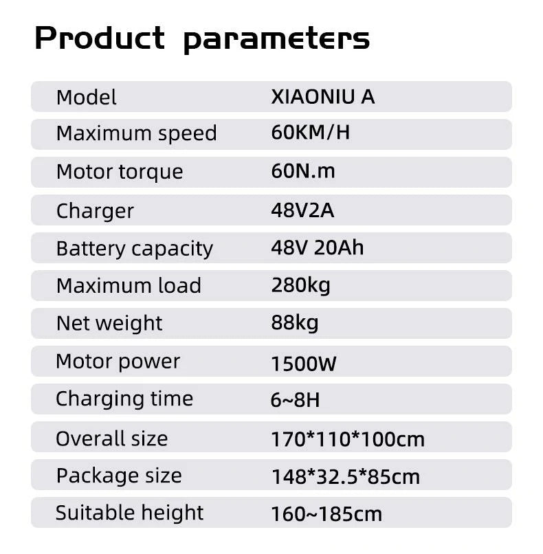 1500W Motor | 48V 20Ah Battery | 60km/h Speed | 45km Range