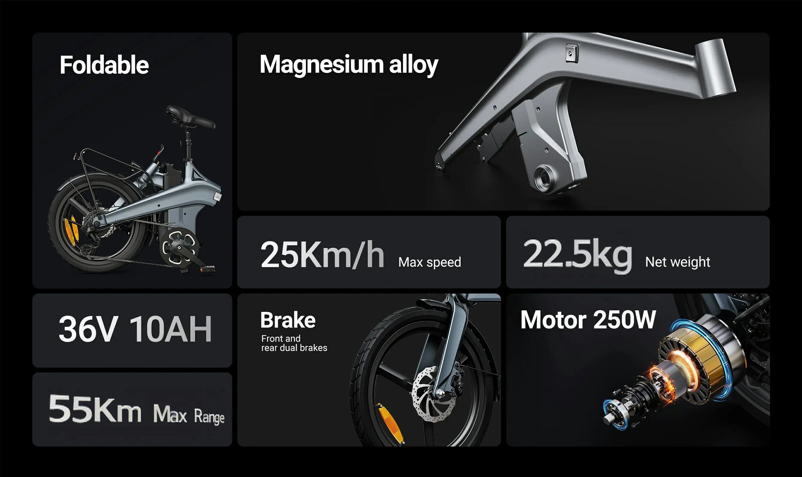 250W Motor | 36V 10AH Battery | 25km/h Speed | 36km Range