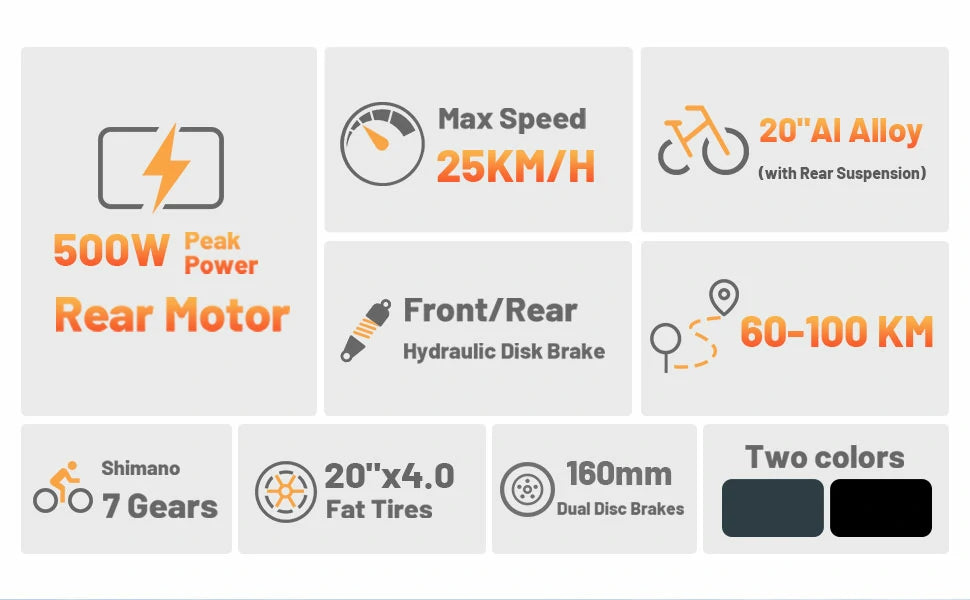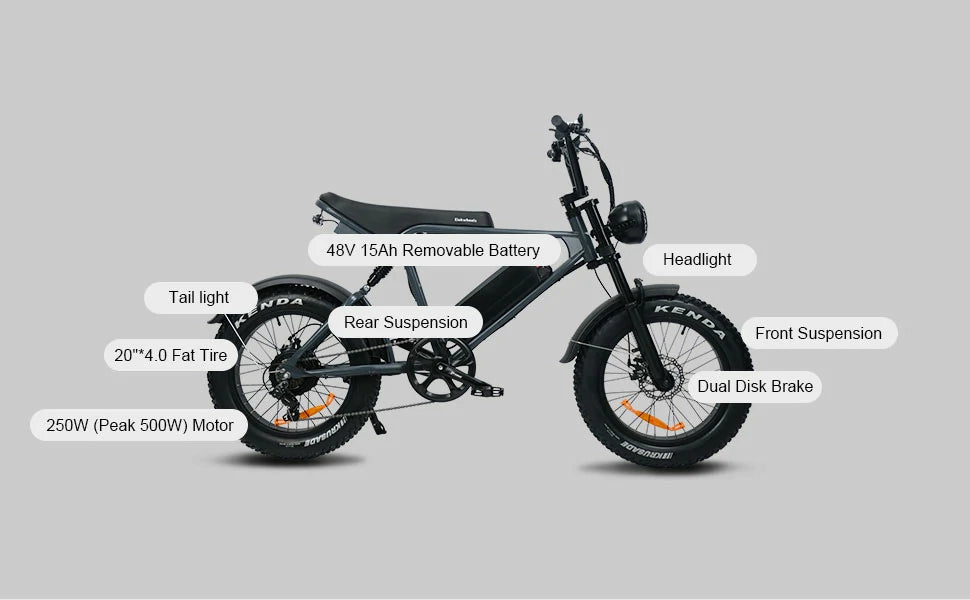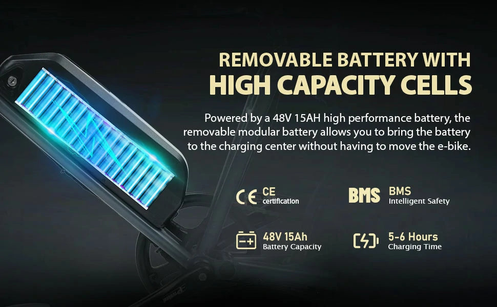 500W Motor | 48V 15Ah Battery | 25km/h Speed | 60-100km Assist Range