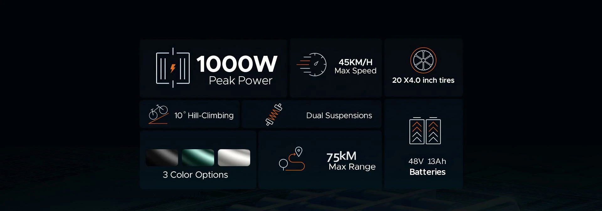 750W Motor | 48V 26AH Battery | 45km/h Speed | 75km Range