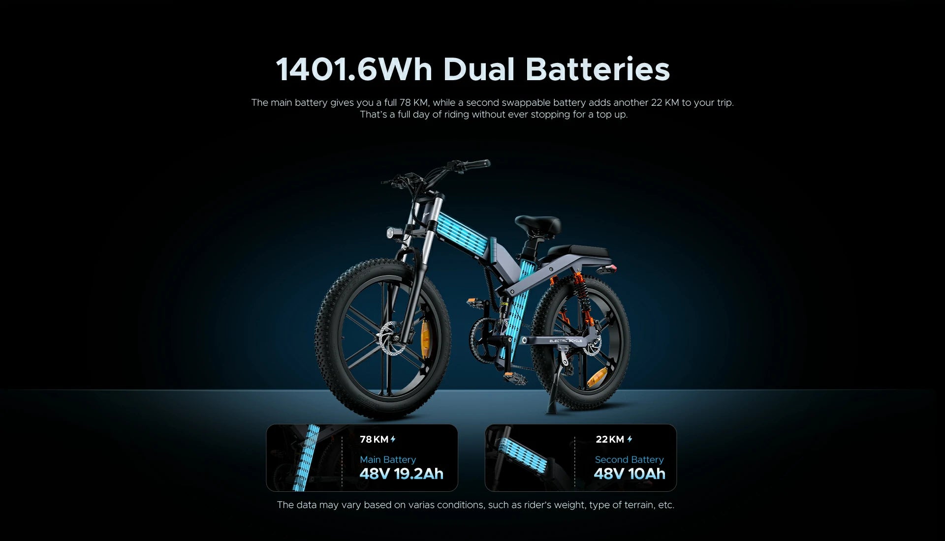 1000W Motor | 48V 29.2AH Battery | 50km/h Speed | 100km E-Range