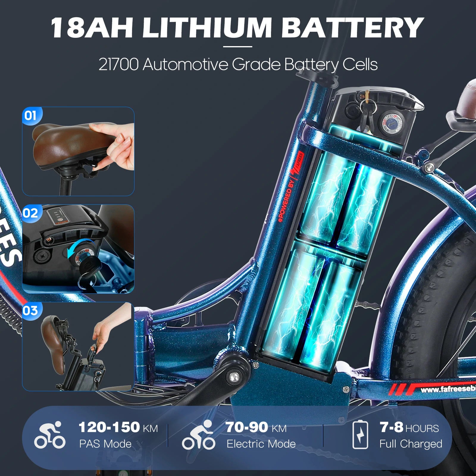 250W Motor | 36V 18AH Battery | 25km/h Speed | 70-90km Range