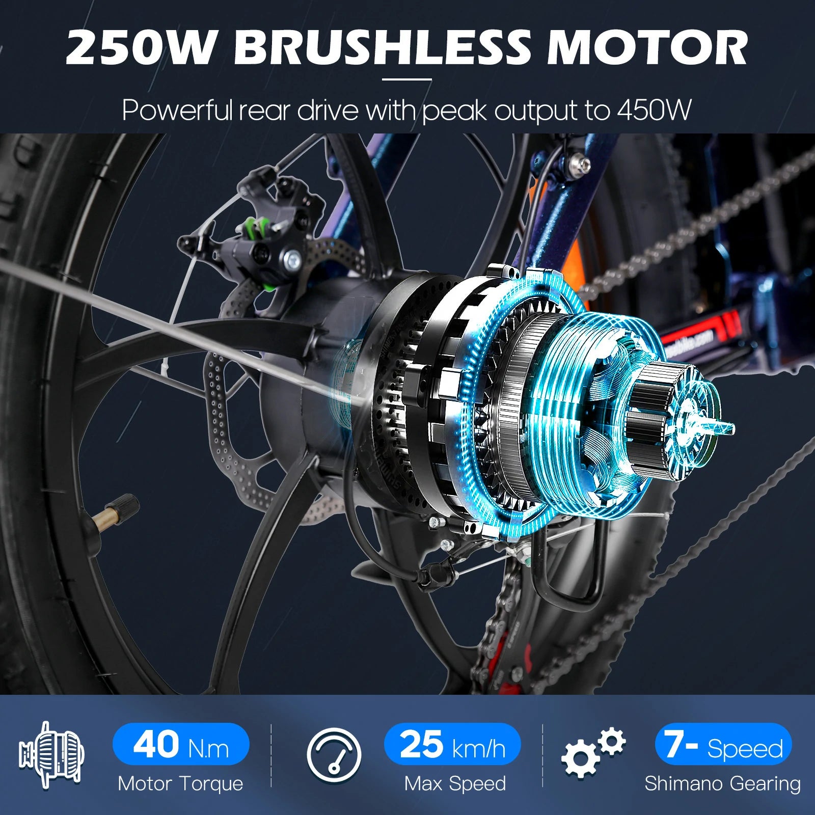 250W Motor | 36V 15Ah Battery | 25km/h Speed | 60-80km E-Range