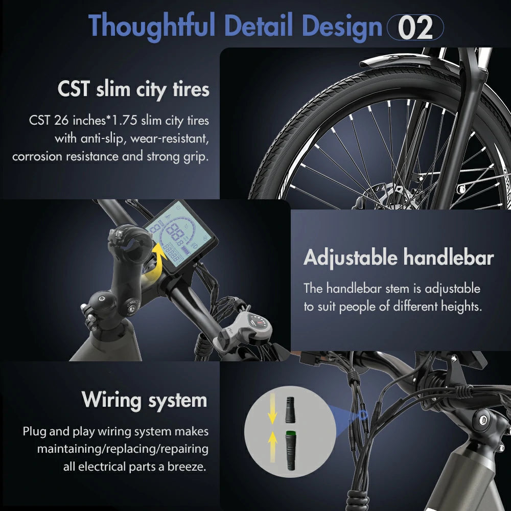 250W Motor | 36V 14.5Ah Battery | 25km/h Speed | 55-65km E-Range