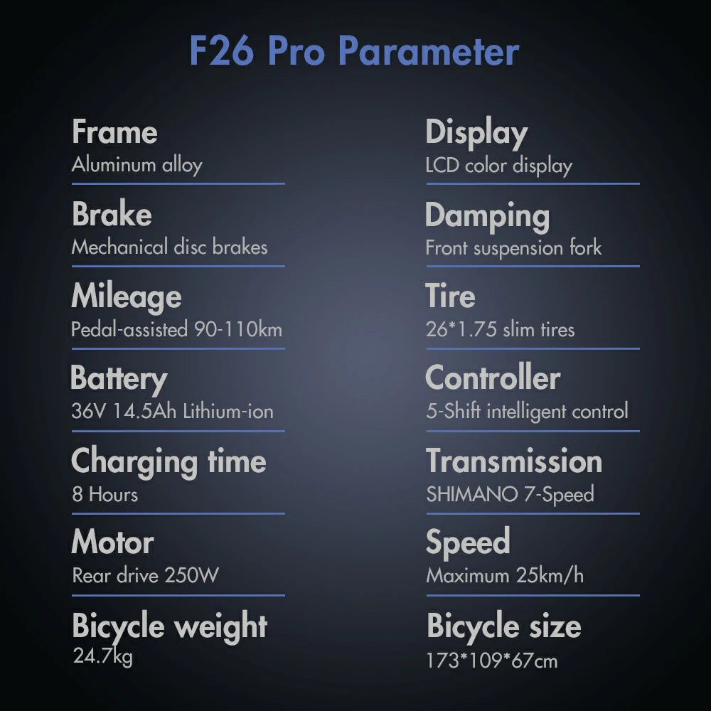 250W Motor | 36V 18Ah Battery | 25km/h Speed | 70-90km E-Range