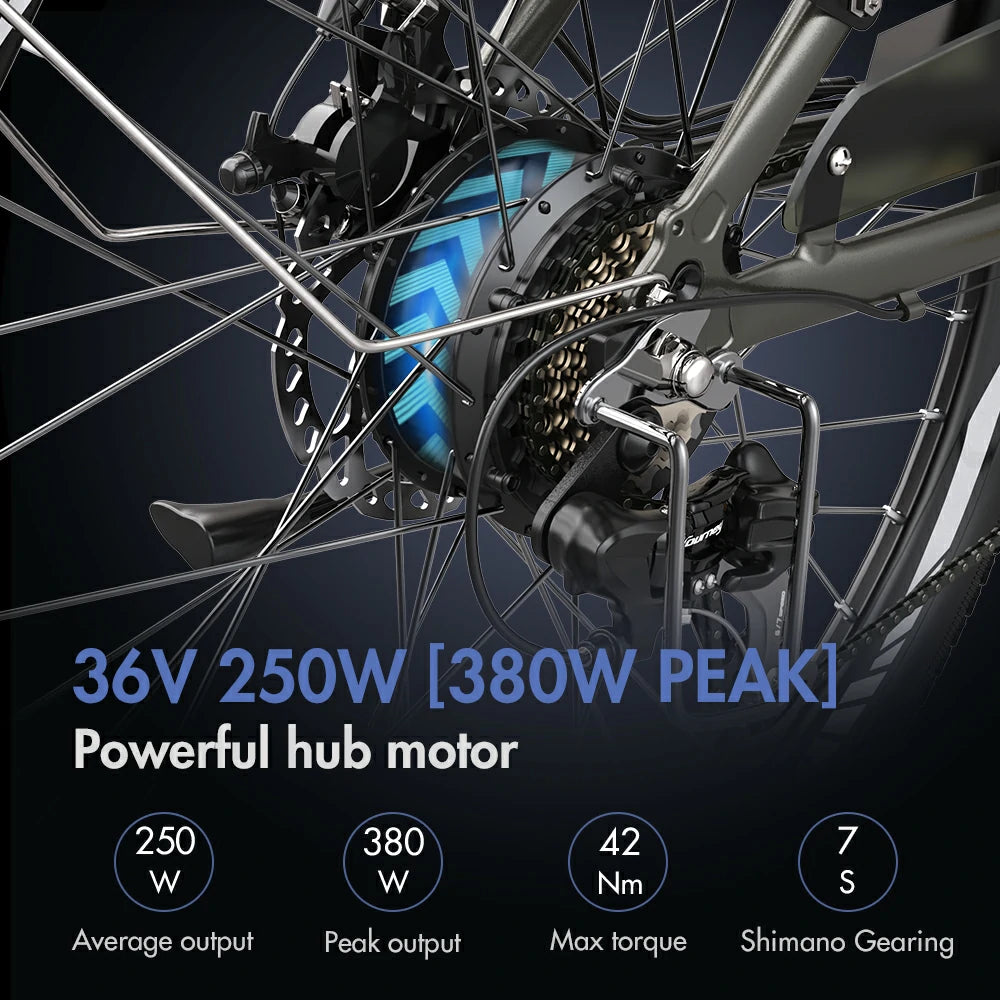 250W Motor | 36V 13Ah Battery | 25km/h Speed | 45-55km E-Range