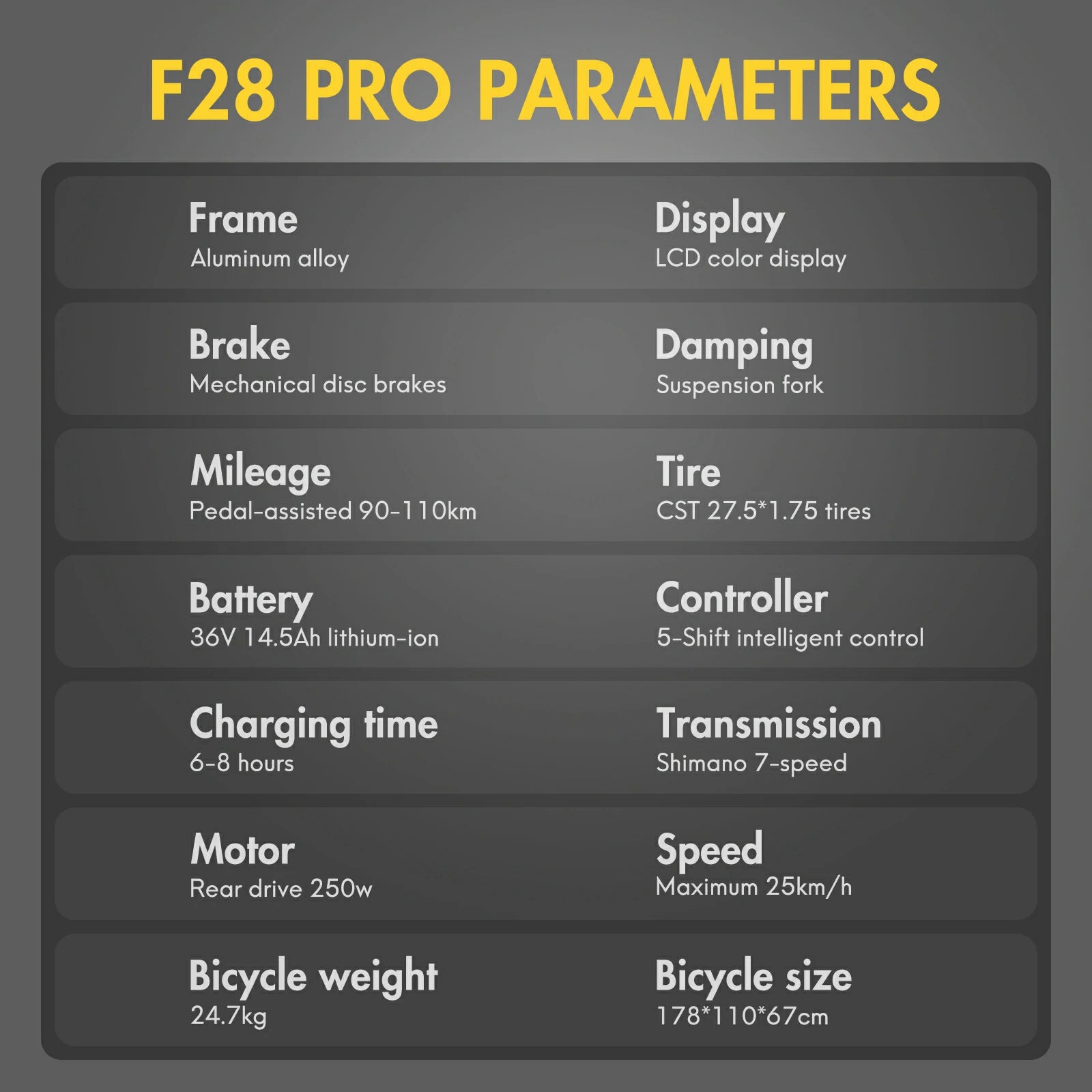 250W Motor | 36V 18Ah Battery | 25km/h Speed | 70-90km E-Range