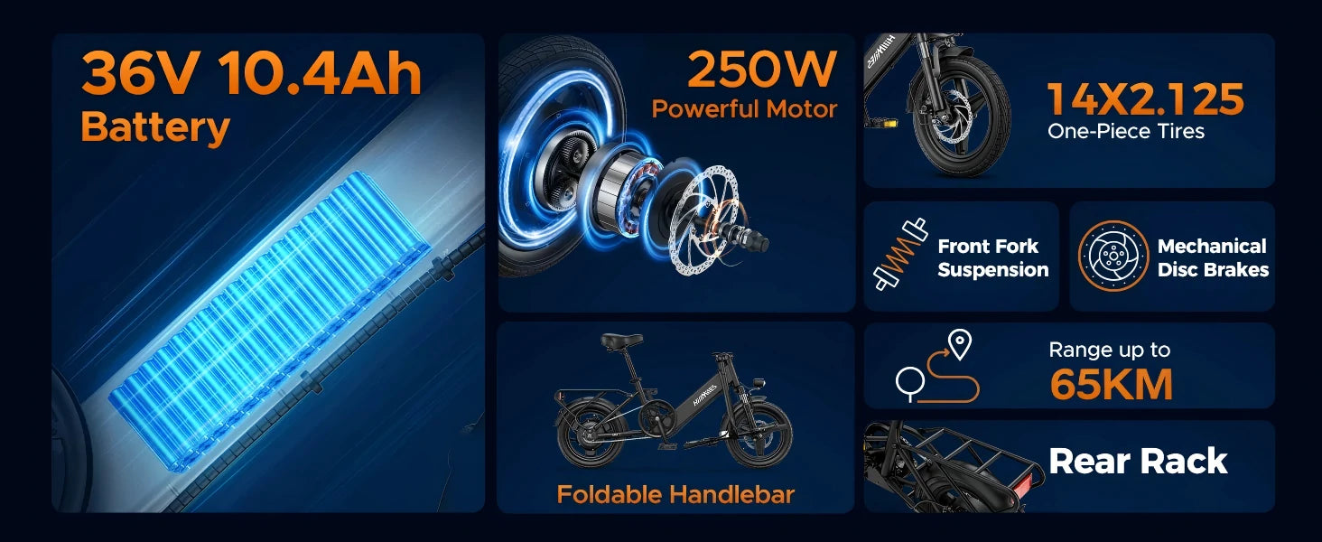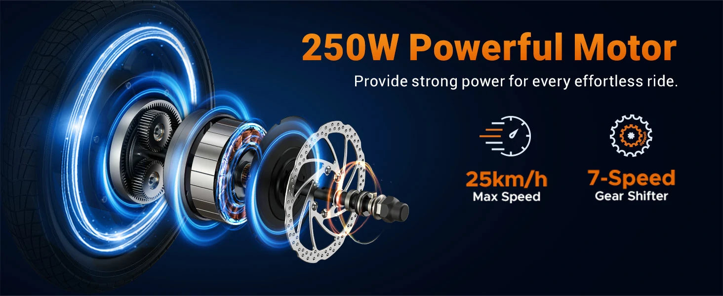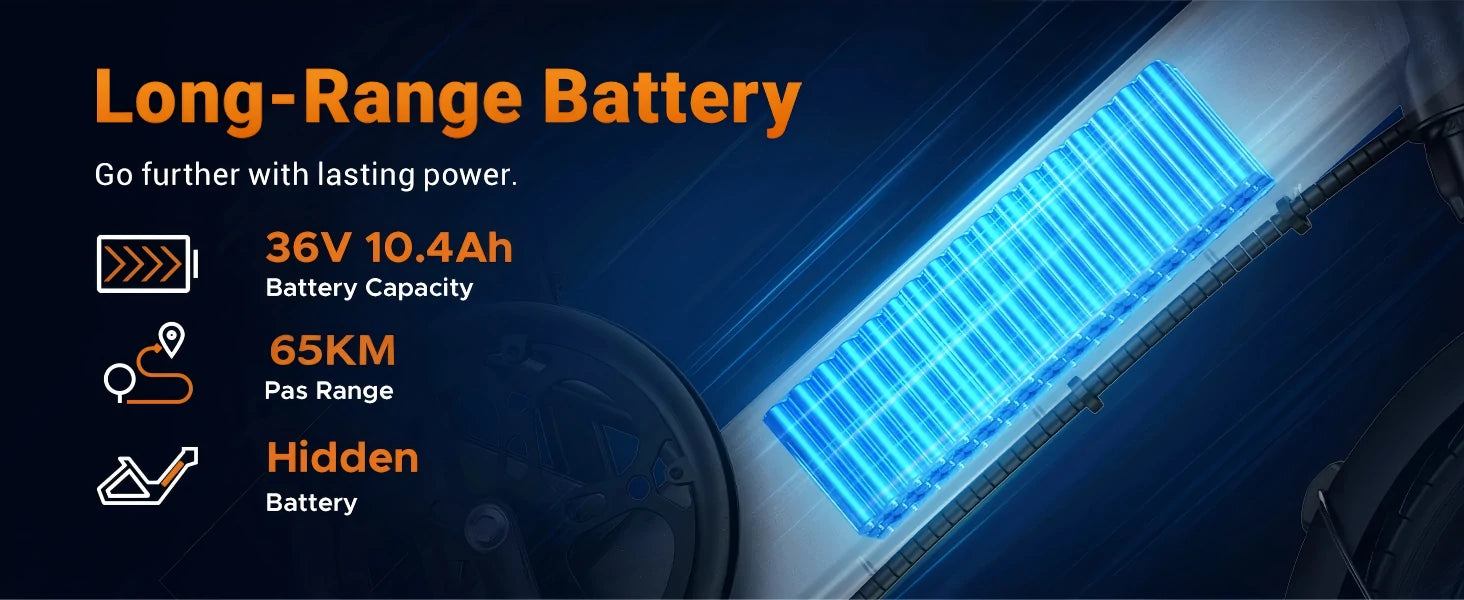 250W Motor | 36V 10.4Ah Battery | 25km/h Speed | 40km E-Range