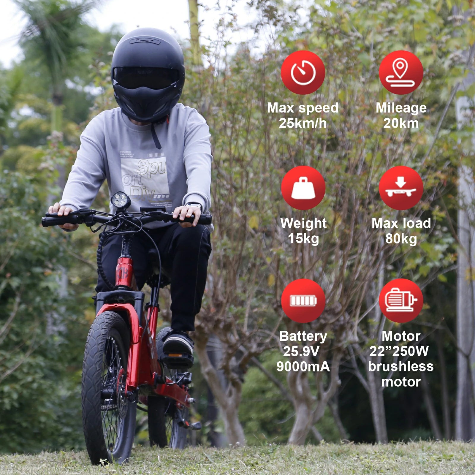 250W Motor | 29.4V 9Ah Battery | 25km/h Speed | 20km Range