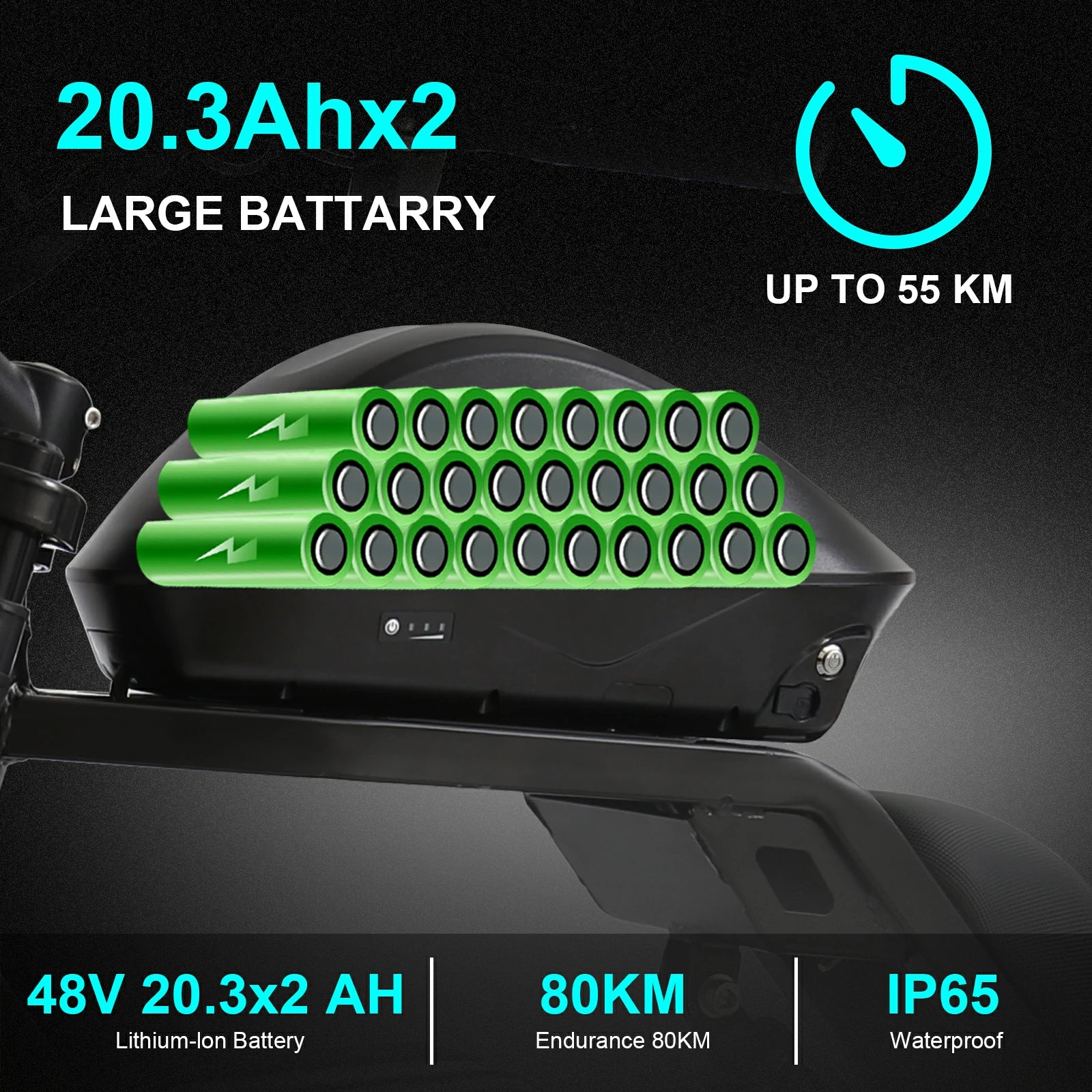 1000W Motor | 48V 20.3*2Ah Battery | 55km/h Speed | 80km Range