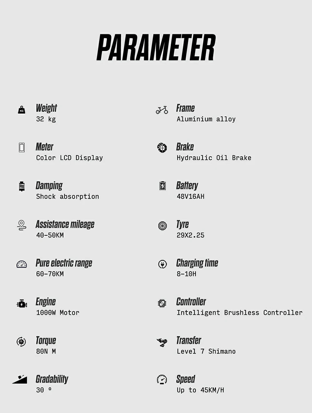 Max E-Range: 40-50kmMax assist range: 60-70km