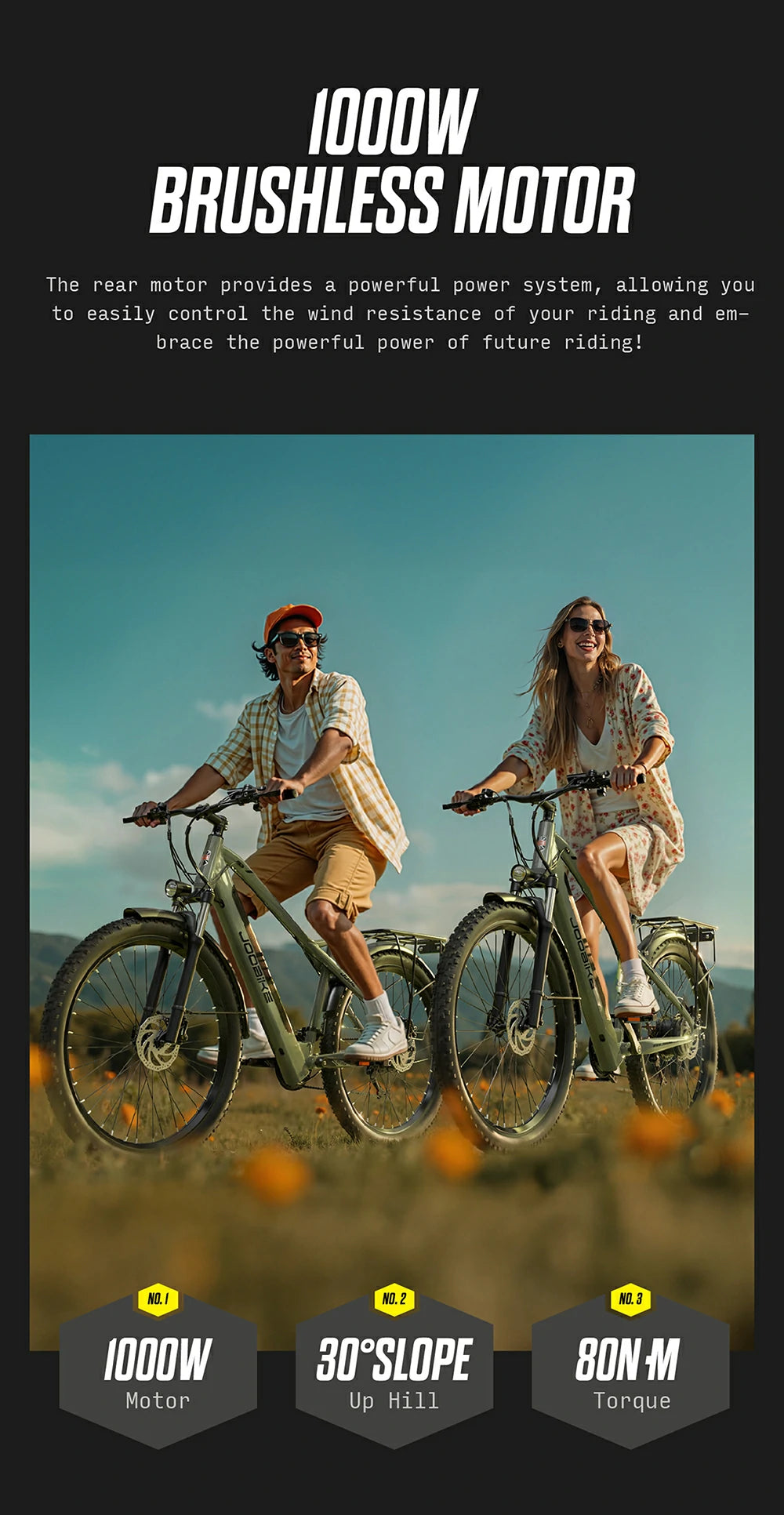 1000W Motor | 48V 16AH Battery | 45km/h Speed | 40-50km Range