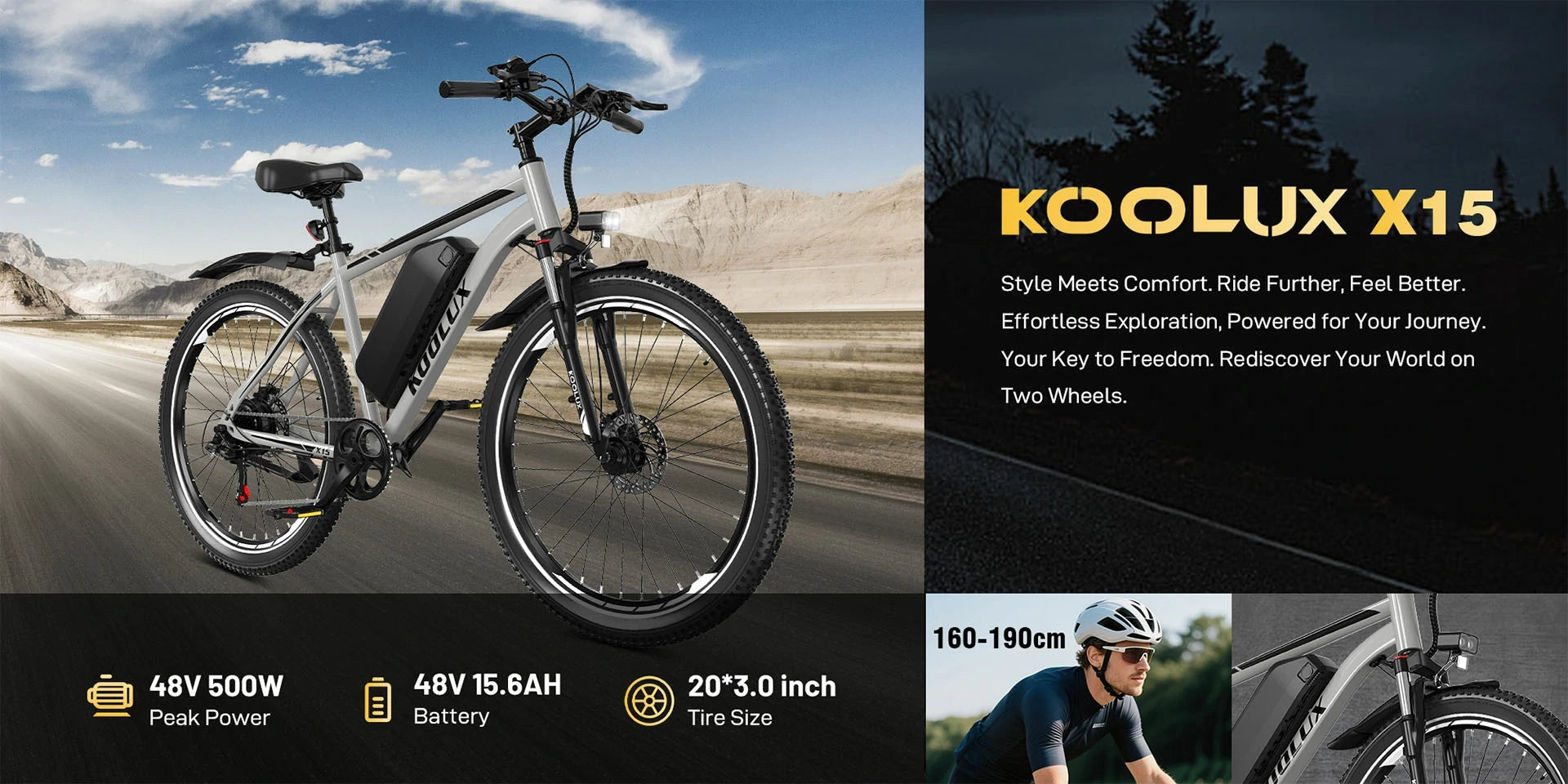 500W Motor | 48V 15.6AH Battery | 42km/h Speed | 60-120km Range