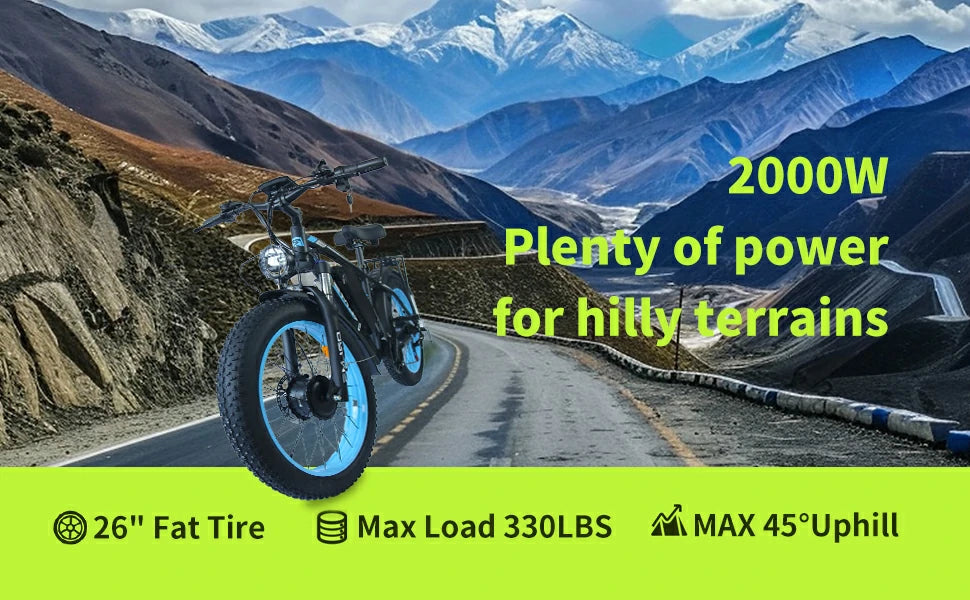 1000W*2 Dual Motor | 52V 25Ah Battery | 62km/h Speed | 41km E-Range