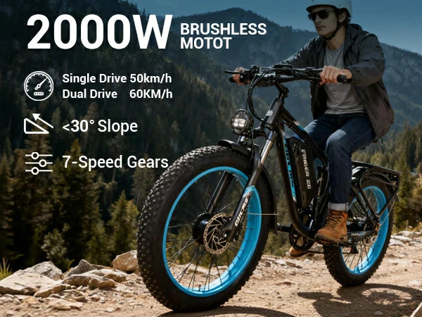 1000W*2 Dual Motor | 52V 25Ah Battery | 50-60km/h Speed | 40km E-Range