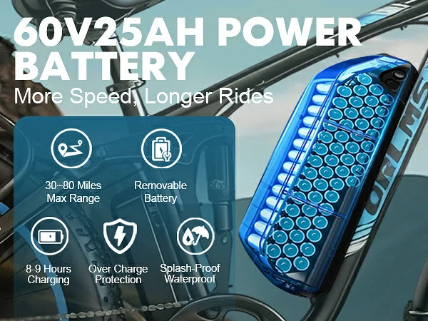 1000W*2 Motor | 60V 25Ah Battery | 50-60km/h Speed | 56-80km Range