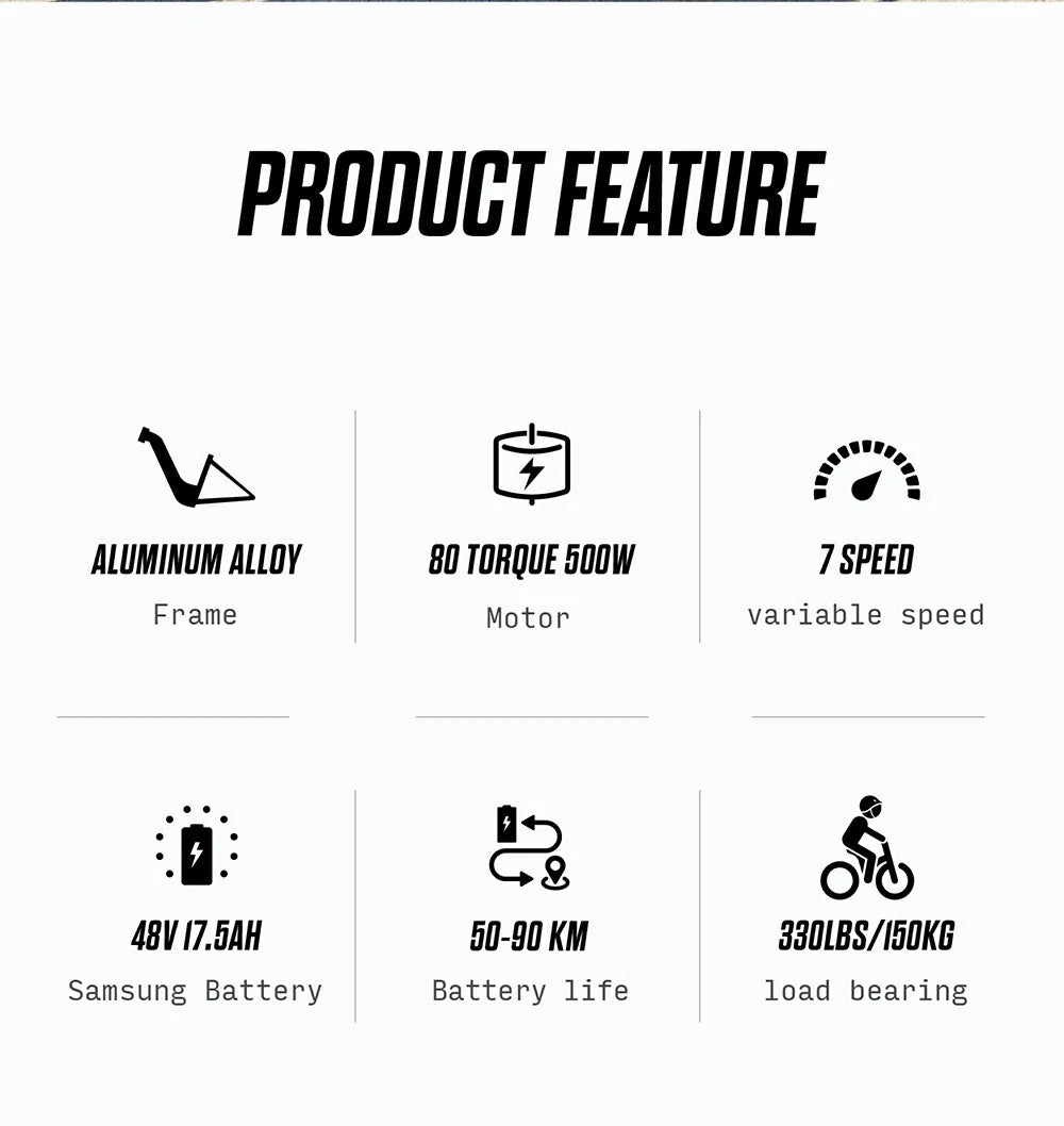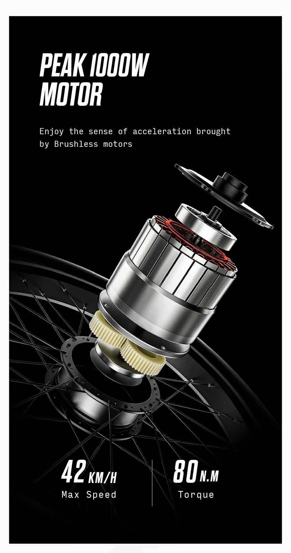 1000W Motor | 48V 17.5AH Battery | 42km/h Speed | 40km Range