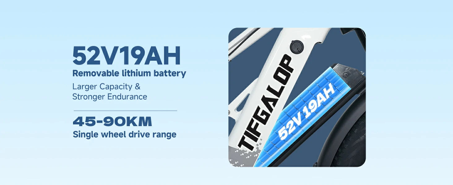 750W Motor | 52V 19AH Battery | 51.5km/h Speed | 45-90km Assist Range